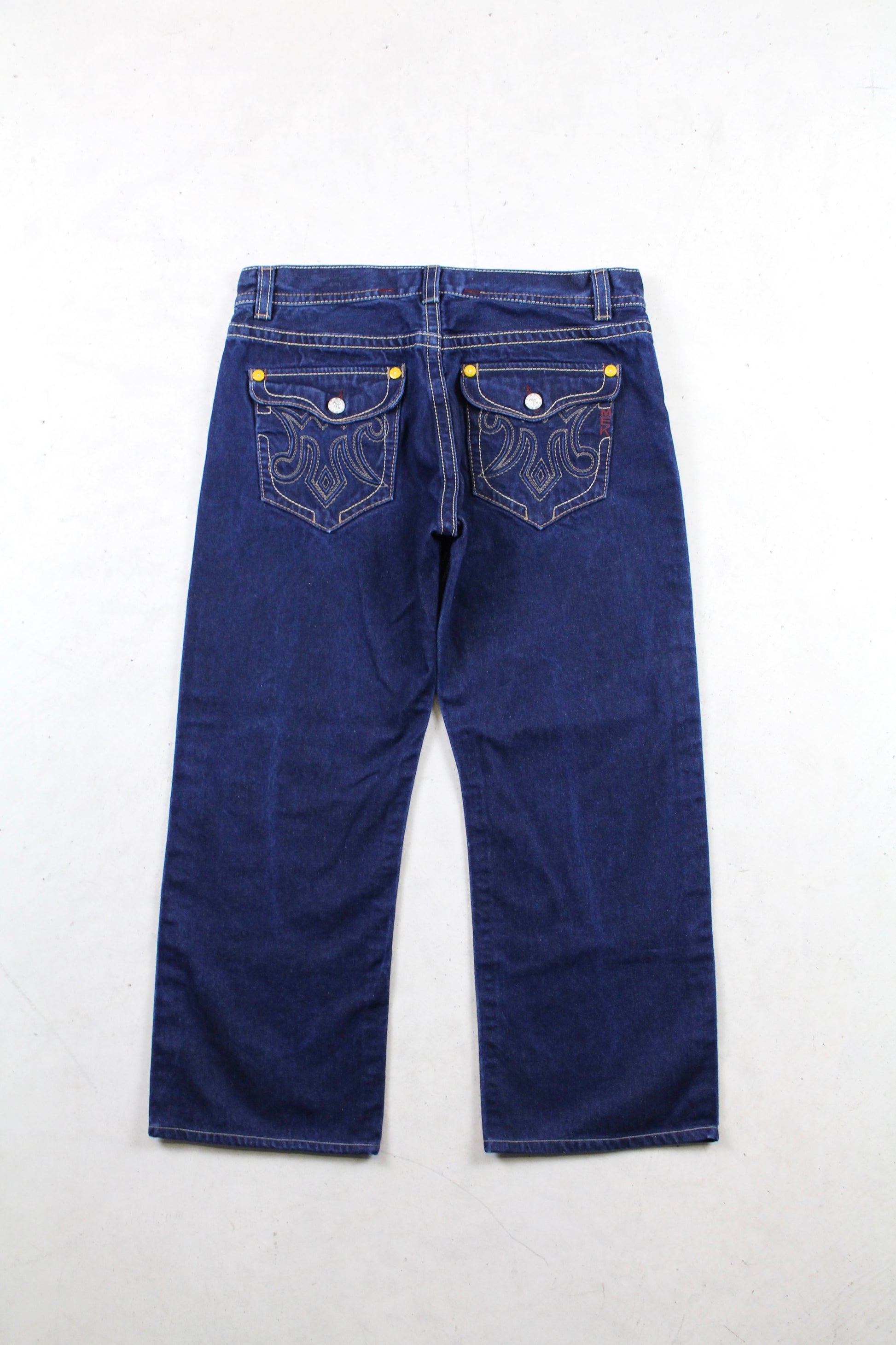 Y2K MEK Embroidered Demin Pants.